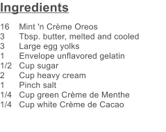 Serve with chocolate curls or Crème de Menthe simple syrup.